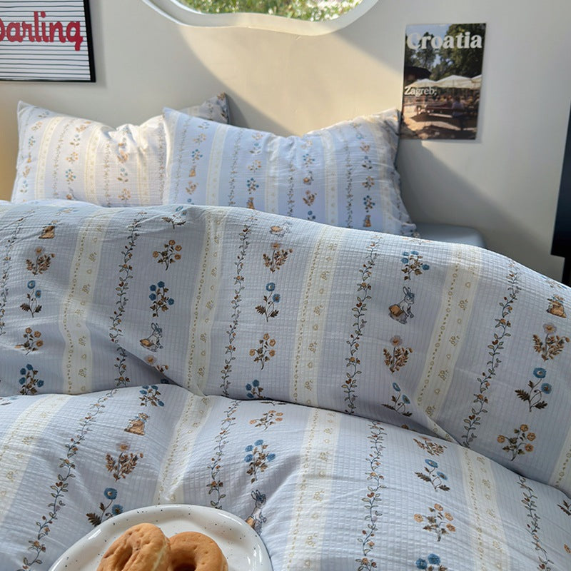 Vierteiliges Bettwäscheset aus gewaschener Baumwolle